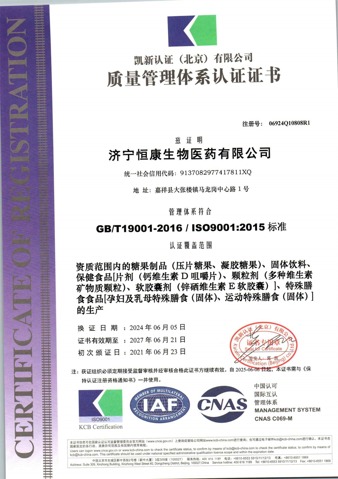 济宁恒康生物医药有限公司QH再认证_页面_1